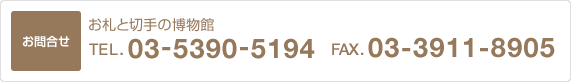 ![お札と切手の博物館へのお問い合わせは[電話:03-5390-5194][FAX:03-3911-8905]](faq.images/img_tel_inpuiry01.png)