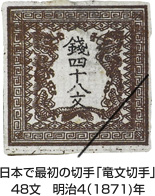 日本で最初の切手は、竜が2匹描かれた「竜文切手」で、明治4(1871)年に発行されました。